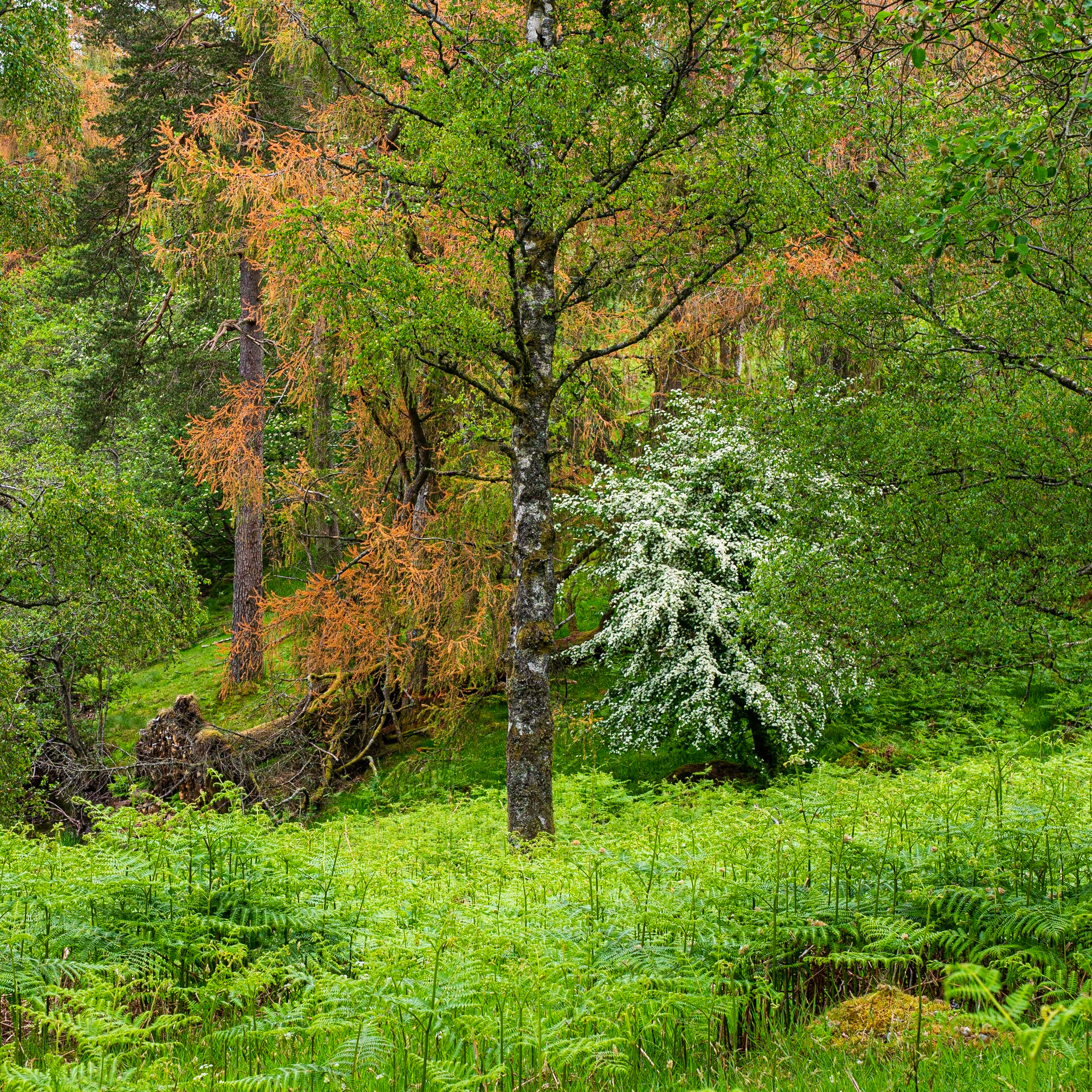 A young silver birch tree at sunset growing amongst the offcuts of slate from the old slate mines at Hodges Close in the English Lake District