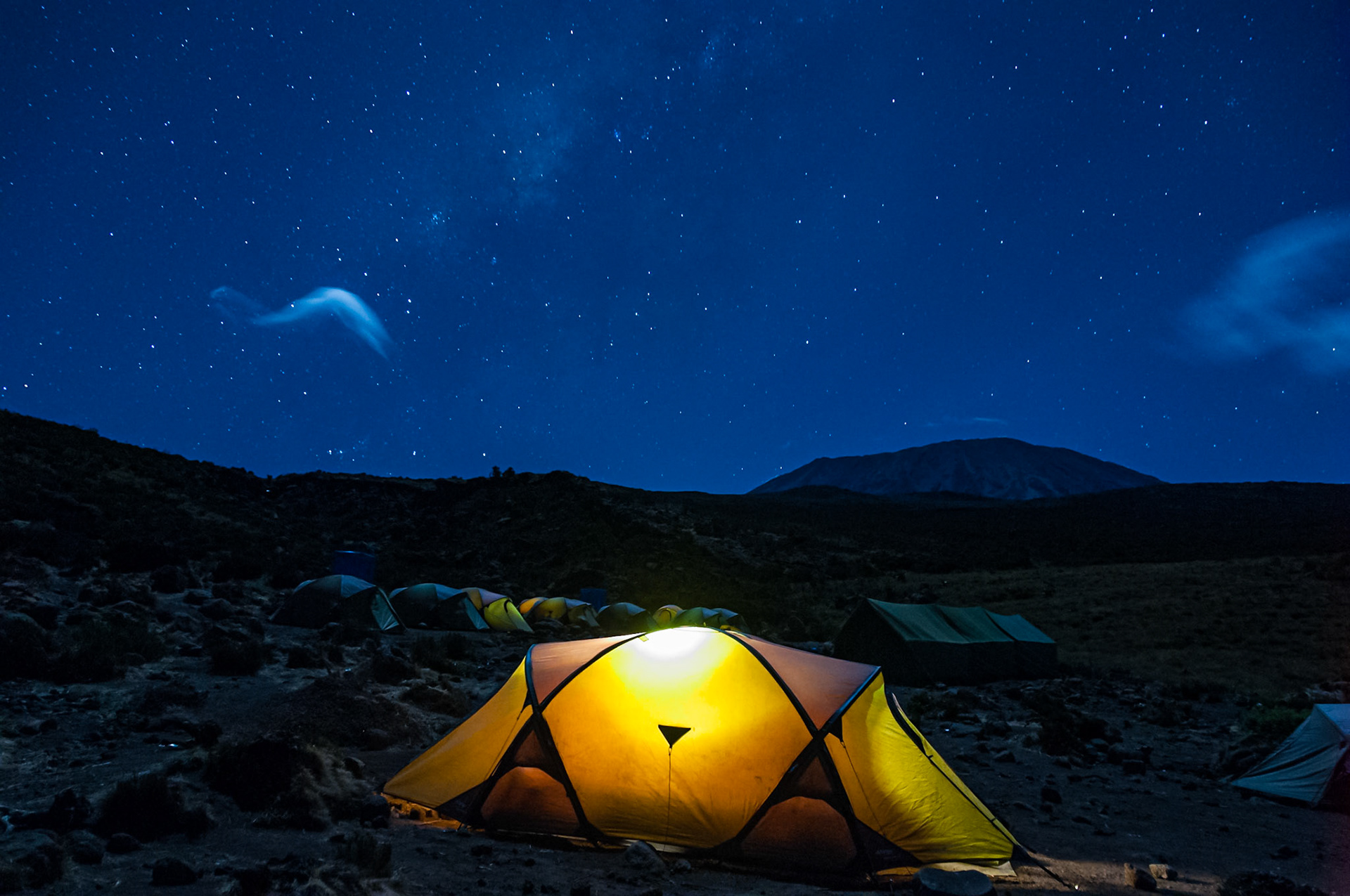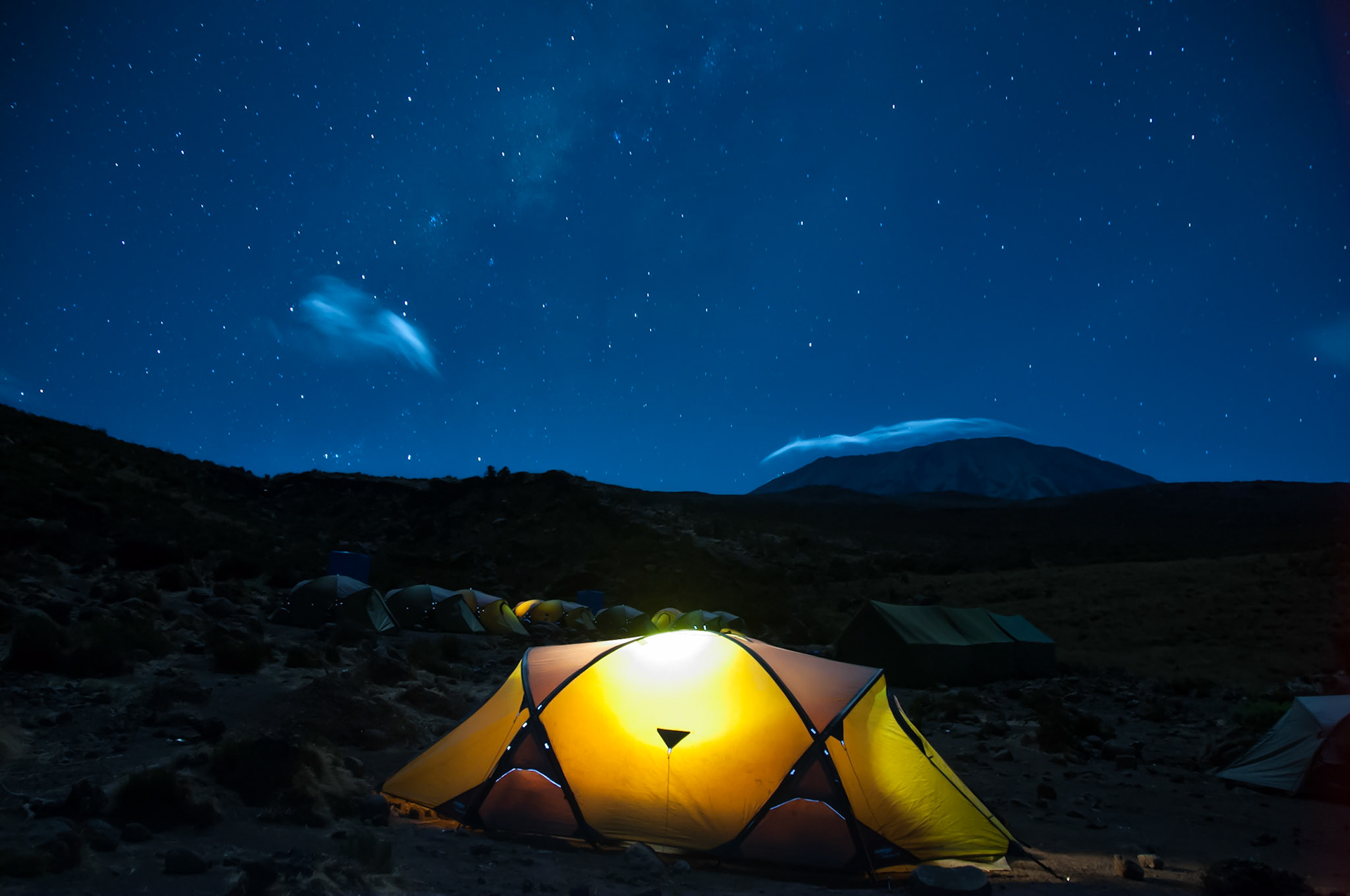Looking over towards Mawenzi from Kibo huts campsite on Kilimanjaro as the sunsets