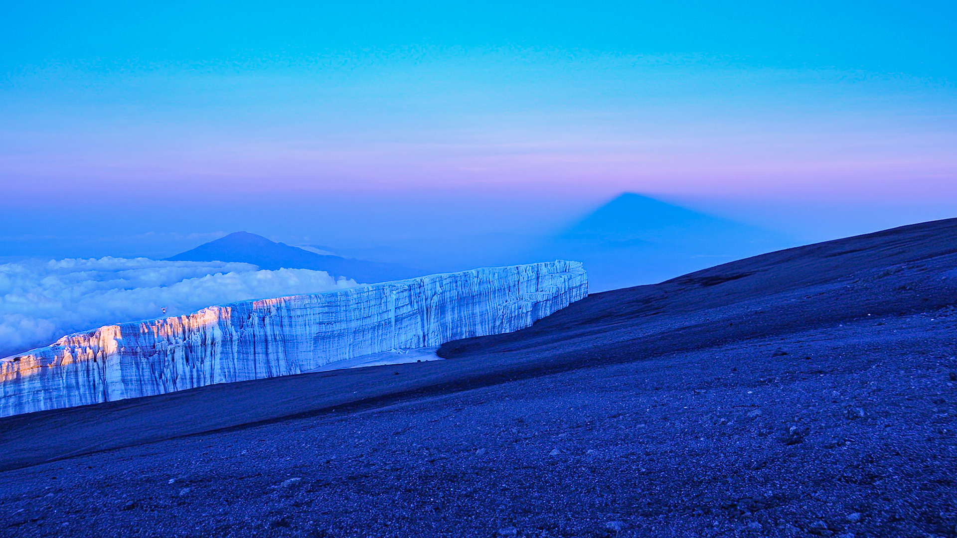 Sunrise over the Rebmann Glacier located near the summit of Mount Kilimanjaro in Tanzania